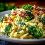If you love this Broccoli Cheddar Orzo Bake, you need to try this one-pot veggie cream orzo from FoodieDishes, and for something crispy to pair, check out my croissant bake delicious crispy recipe or those baked sweet chili wings that pack a punch.
