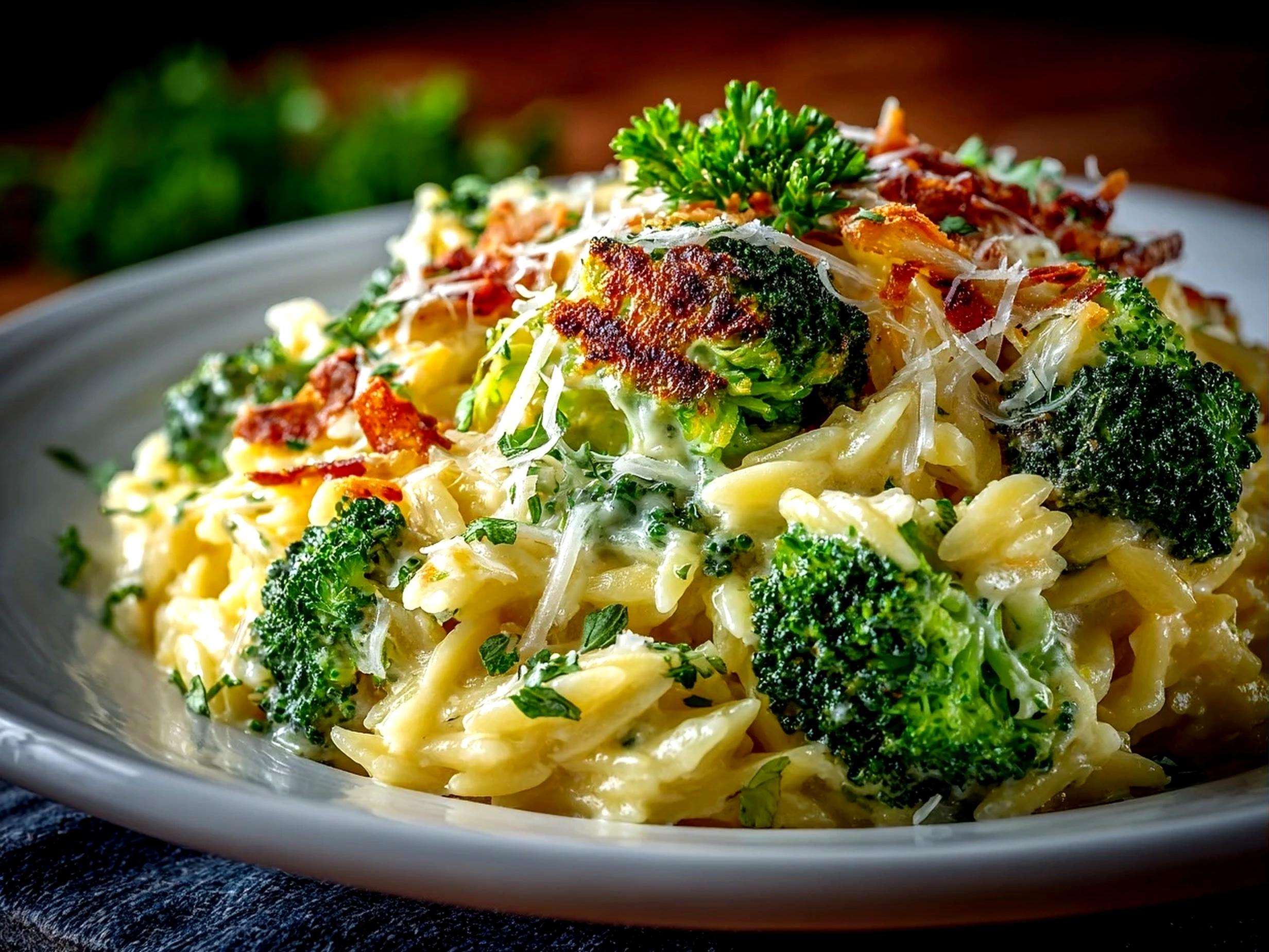 Broccoli Cheddar Orzo Bake