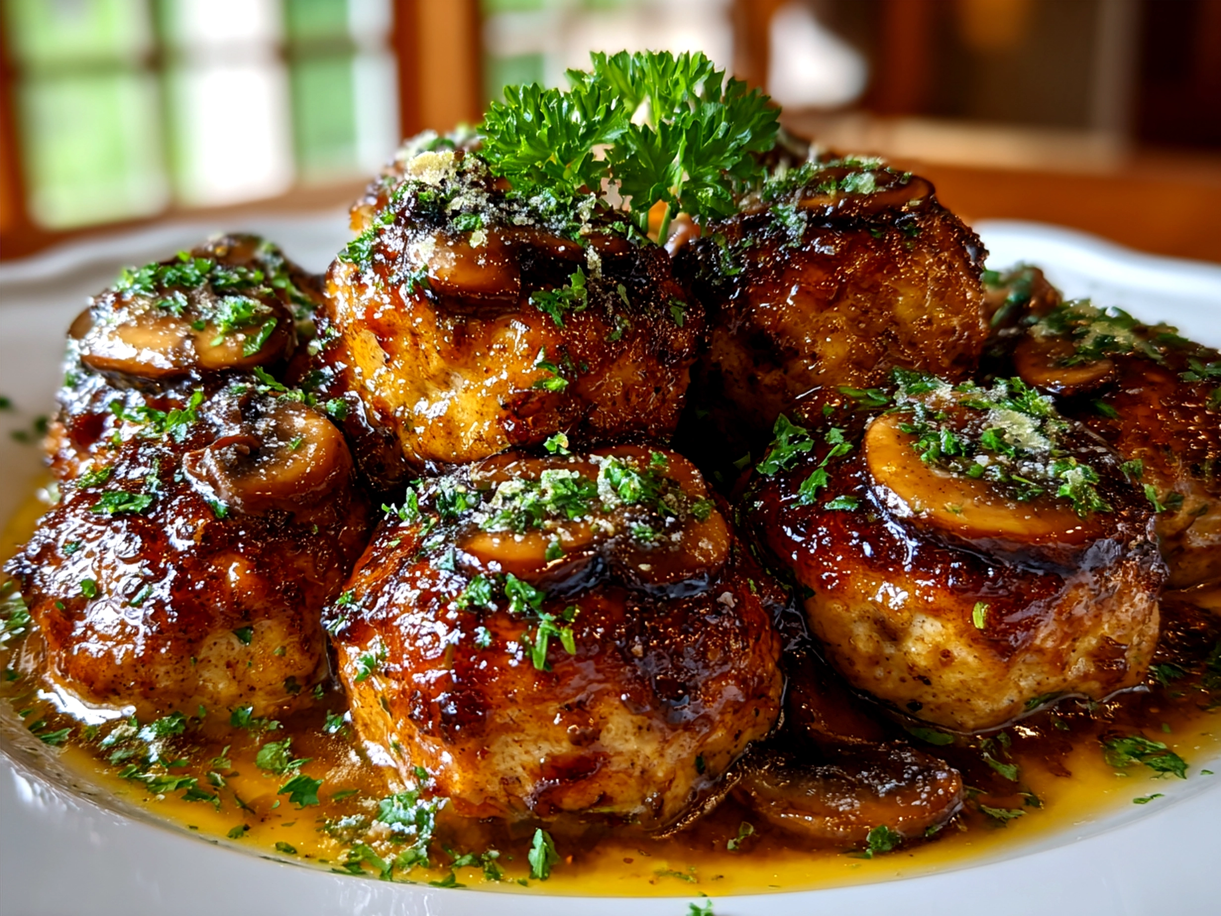 Tender chicken meatballs simmered in a savory mushroom and Marsala wine sauce, perfect for an easy yet elegant Italian-inspired dinner.