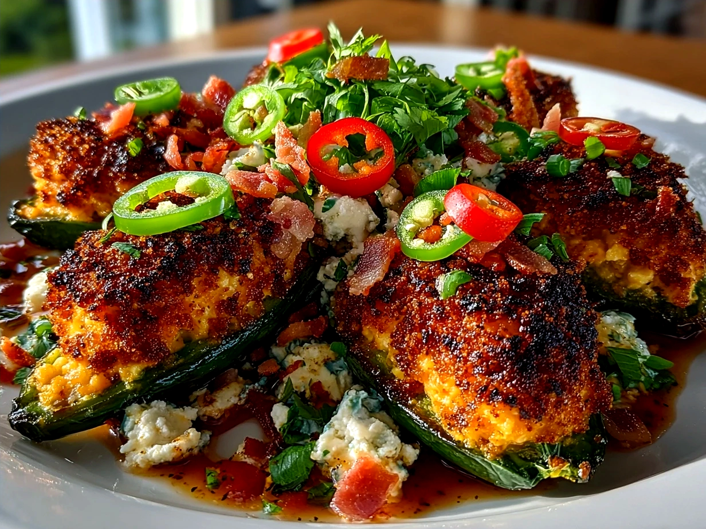 You have to serve this at your next gathering—it disappears fast, trust me! The bright colors and those stuffed jalapeno poppers nestled on top make a killer presentation. For the ‘gram, arrange your poppers in a fan and drizzle with fresh lime crema or a dollop of salsa to really make it pop visually.